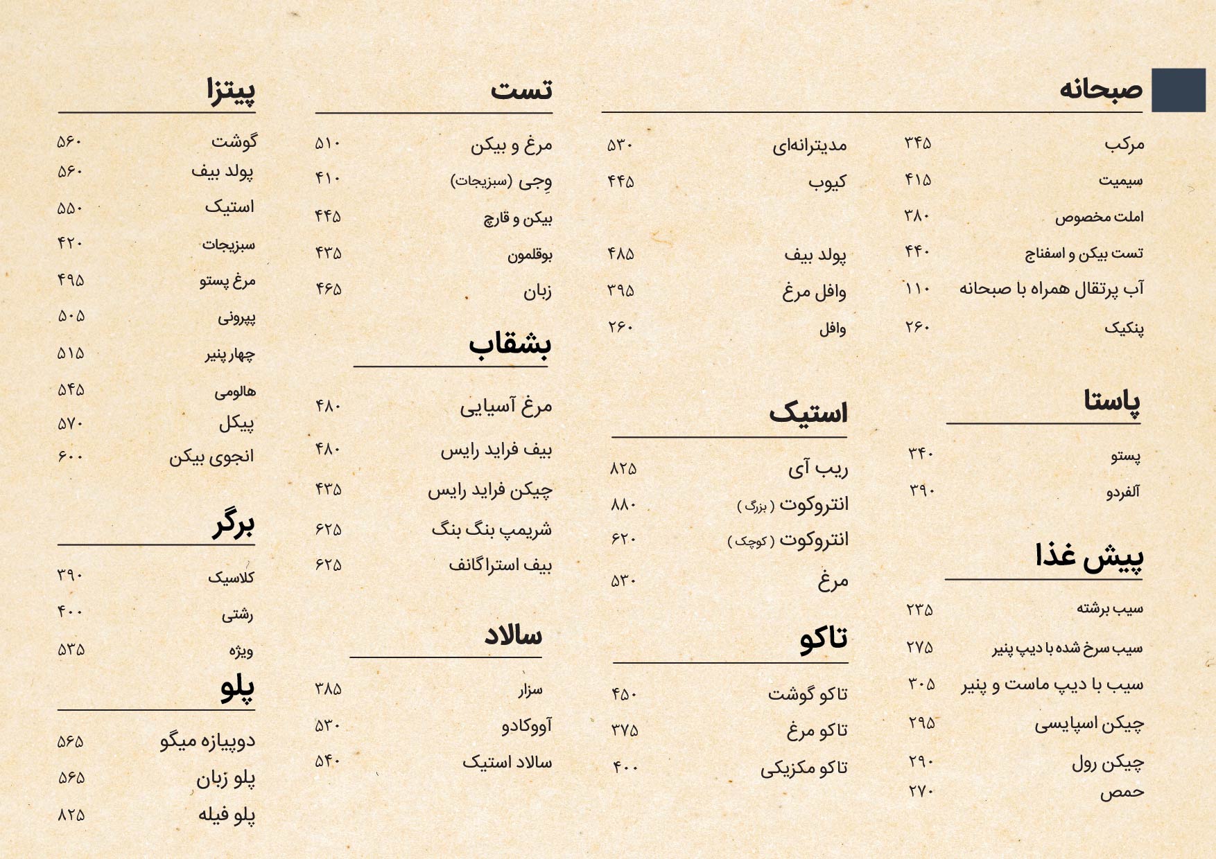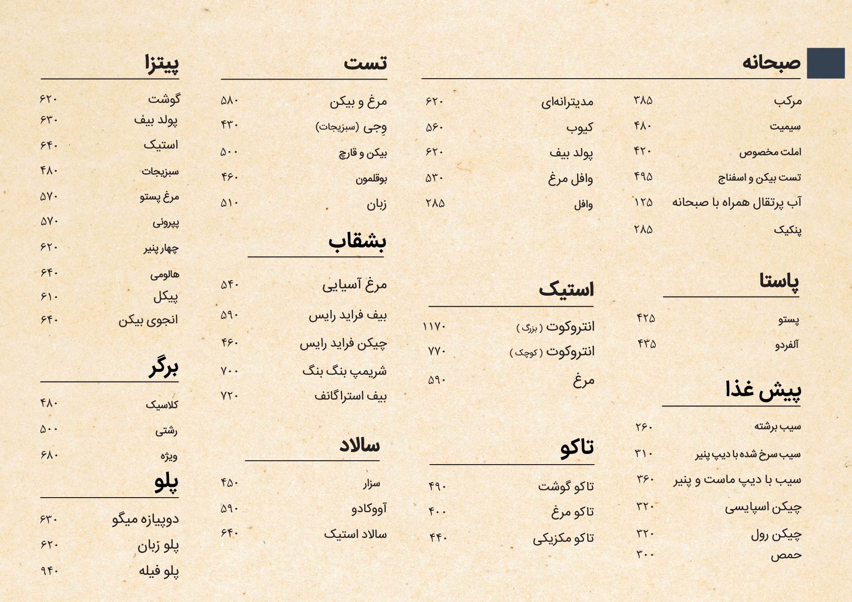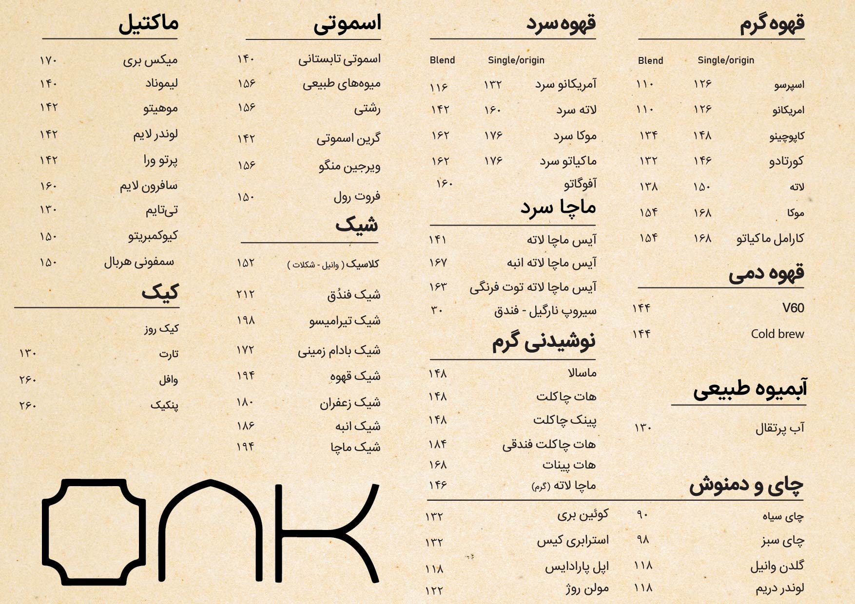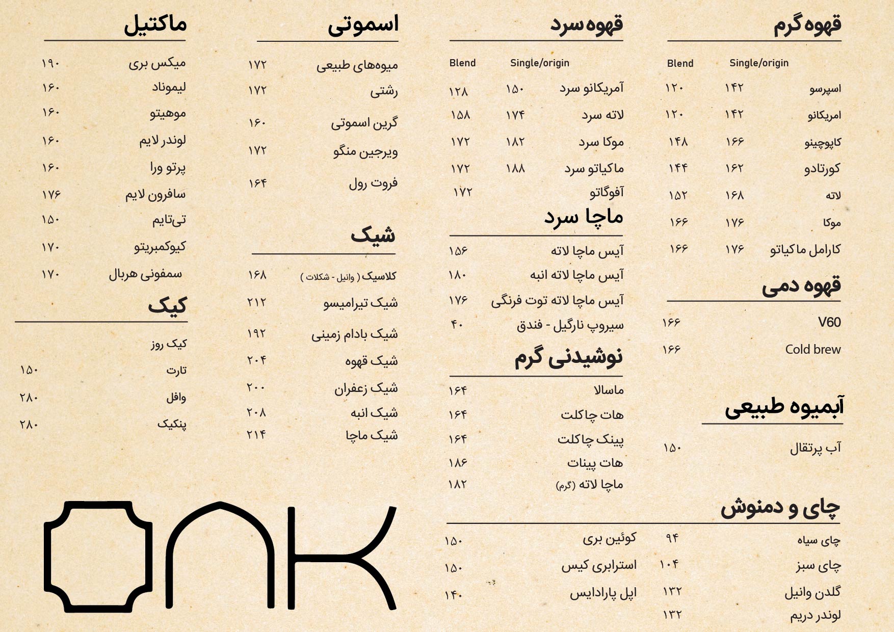 منوی کافه
